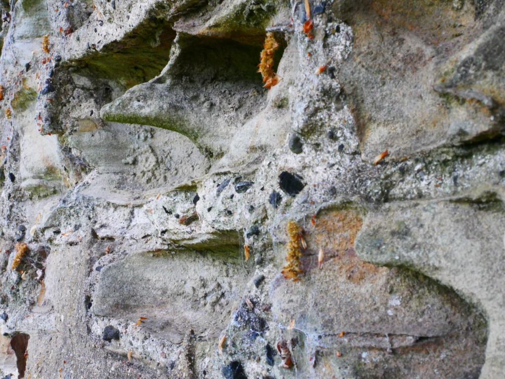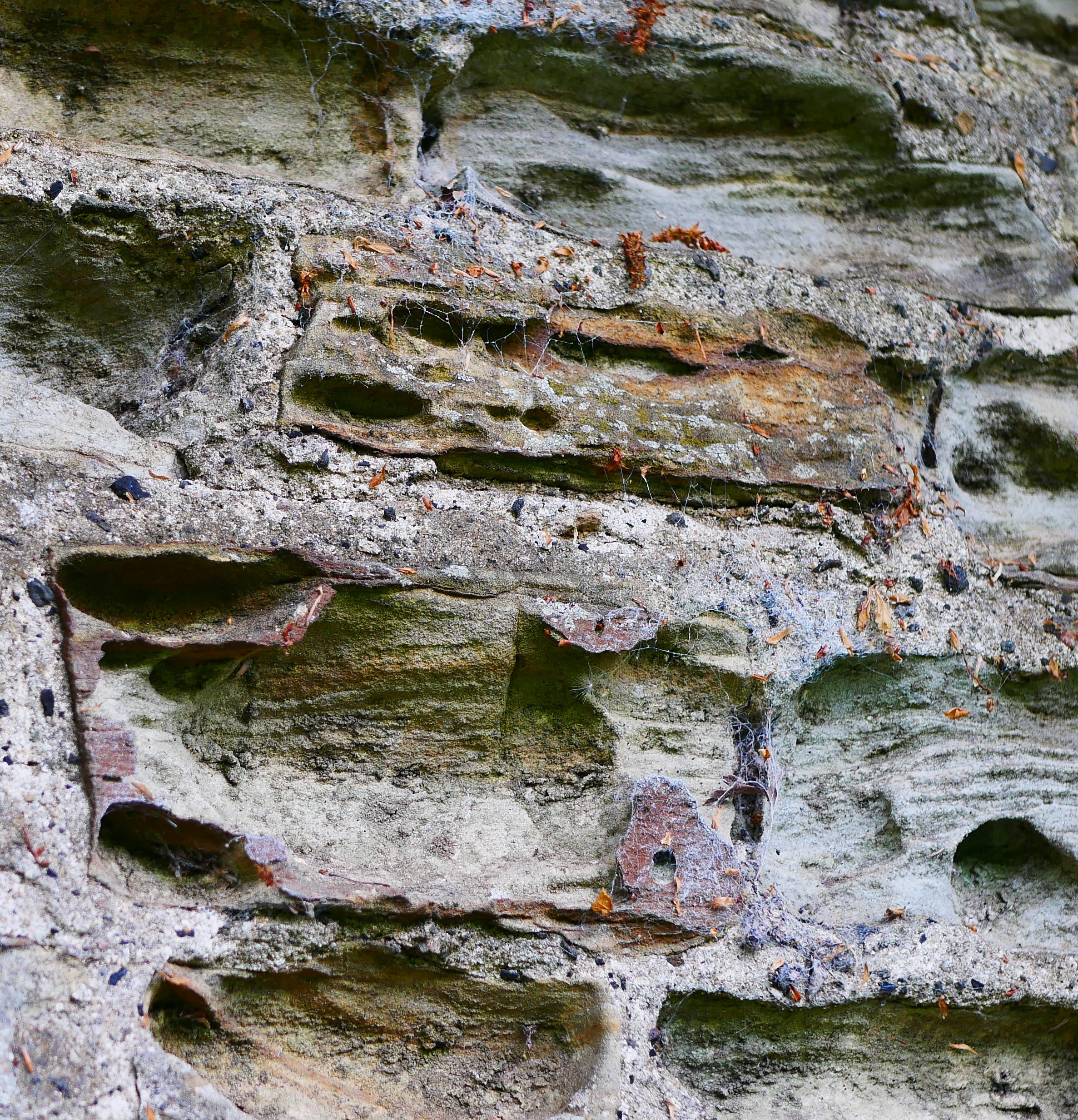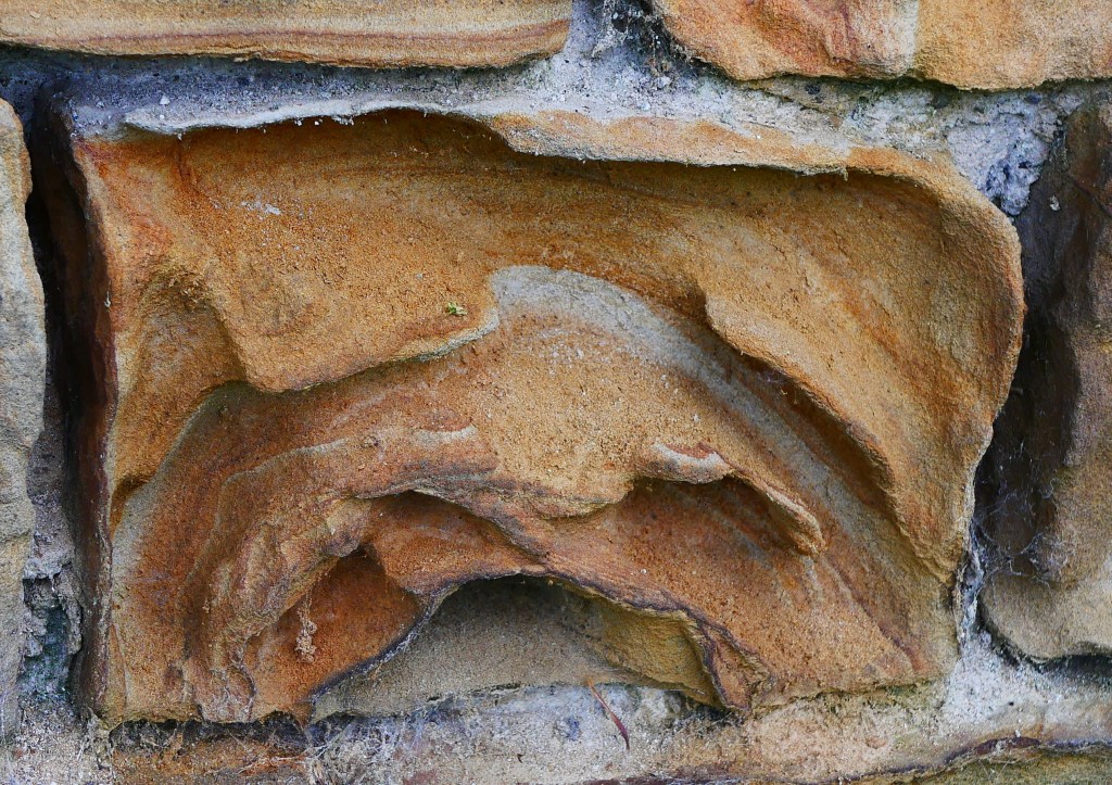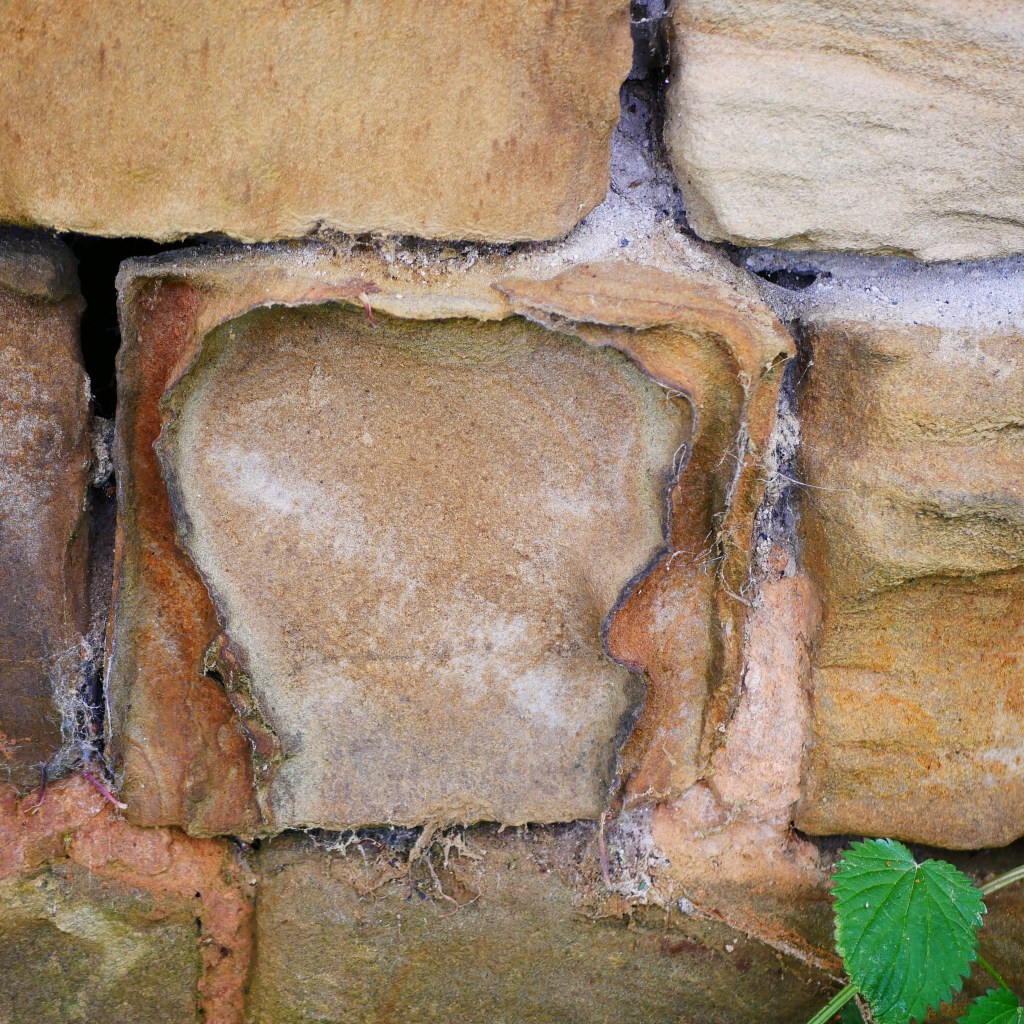 The erosion of the stone allows it to reveal its inner beauty. Whereas a new wall will look fairly uniform and the scutch marks left by the mason’s tools are the main distinguishing features, once erosion starts and develops, all sorts of secrets emerge.