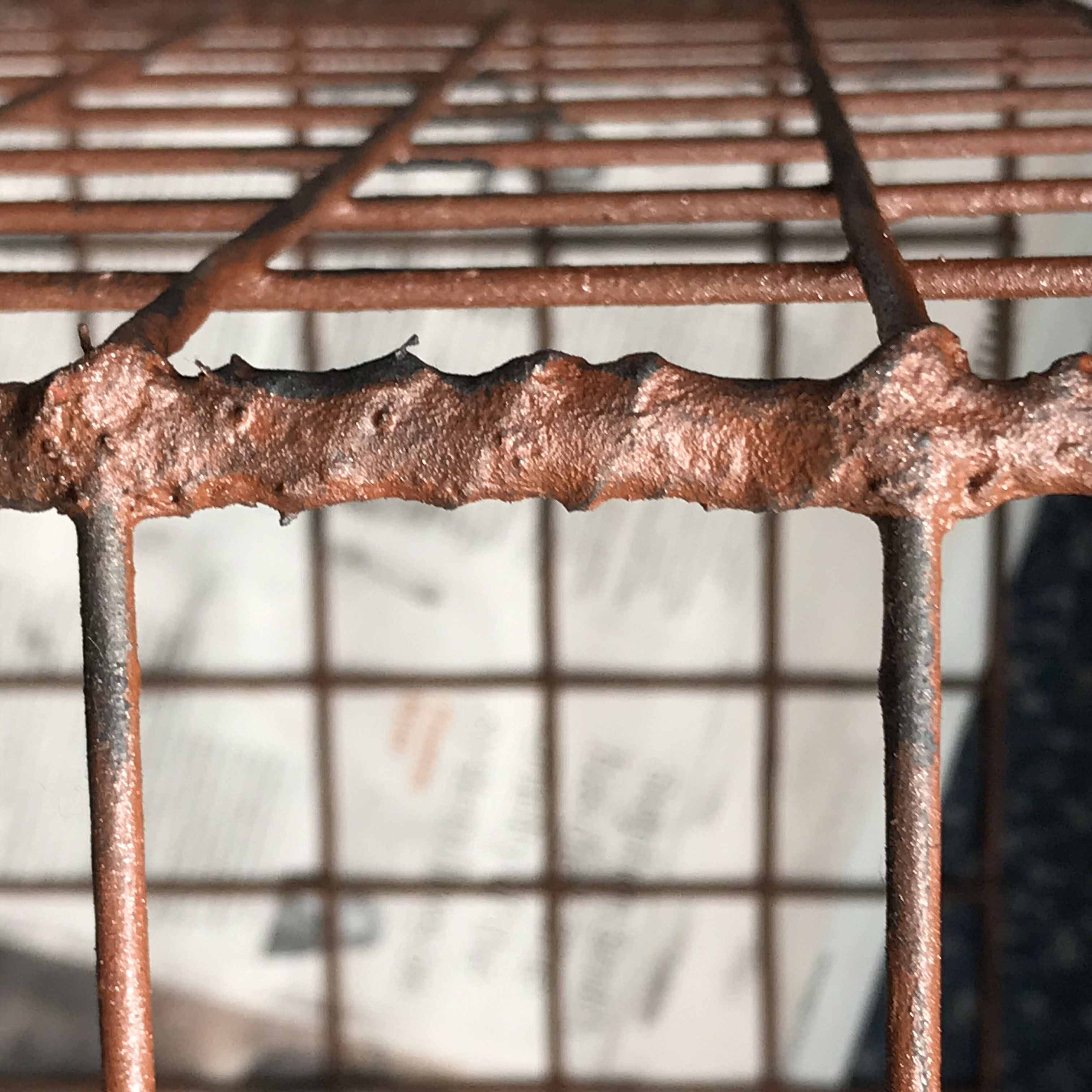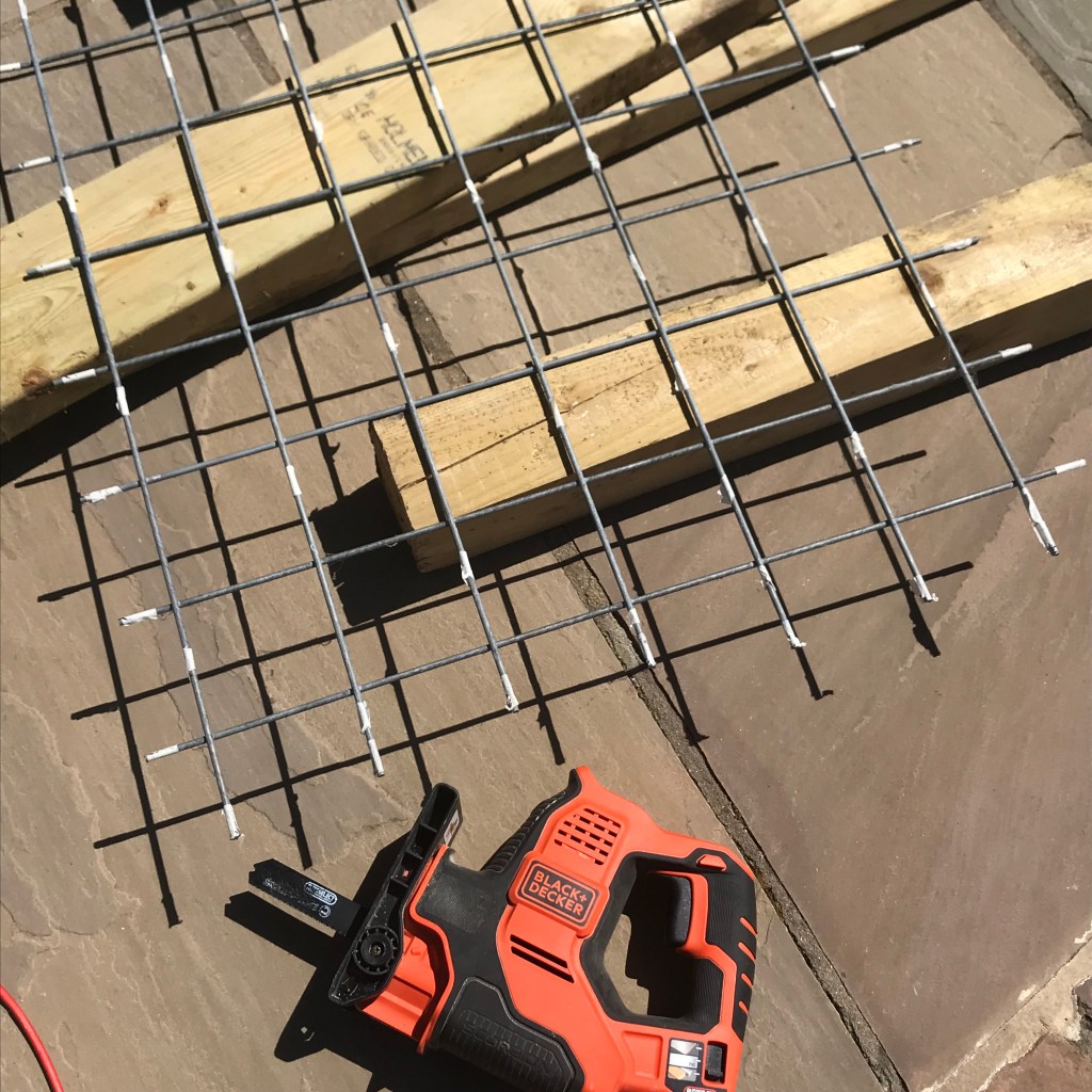 I started with a standard metal grid, then removed some of the rods to make the staggered pattern of the courses of stone and then started to build up some areas with aluminium mesh.
