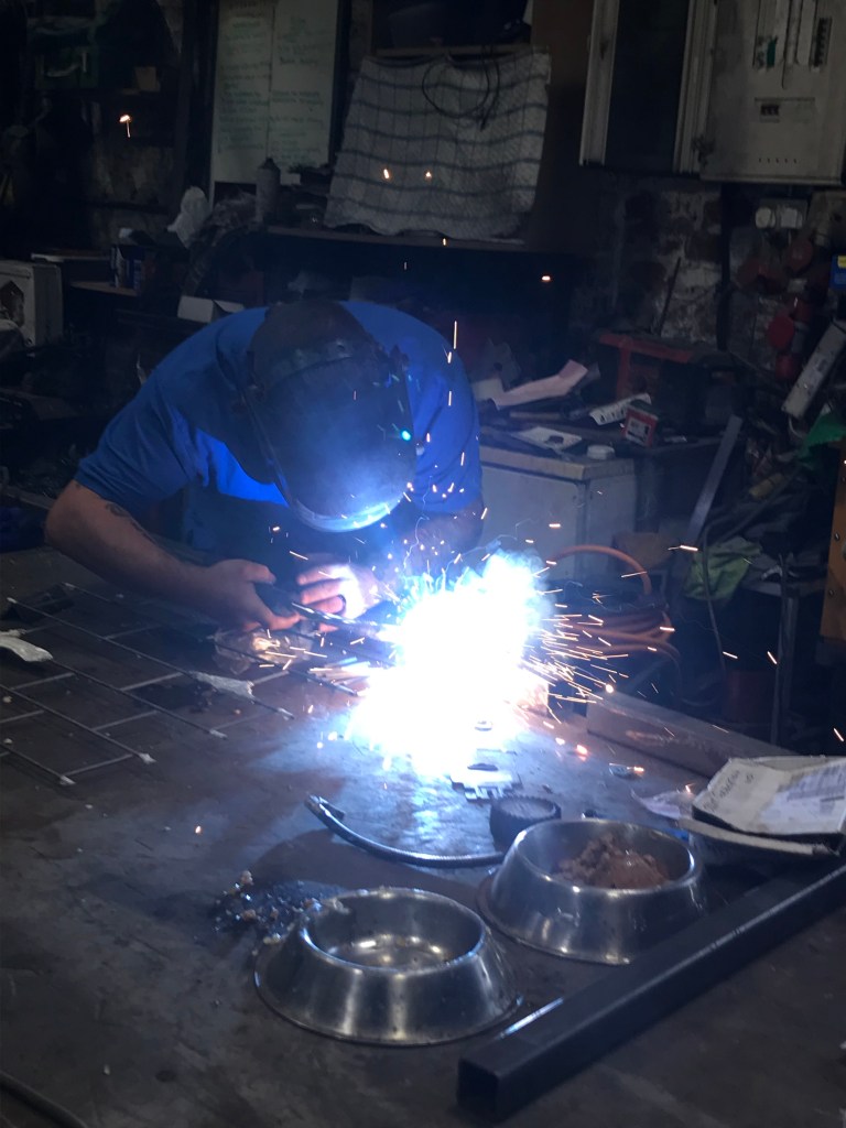 A trip to Adam Lumb of Ossett Fabrications was a glimpse into the world of someone who spends everyday creating solutions in metal. My wall panel looked tiny on his huge workbench. Adam quickly worked out what was needed.