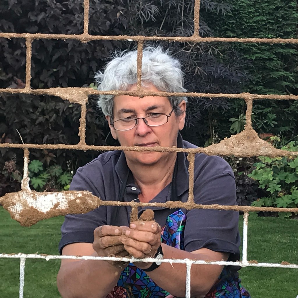 The background frame is a metal grid coated in lime mortar. Making this was hugely time consuming.