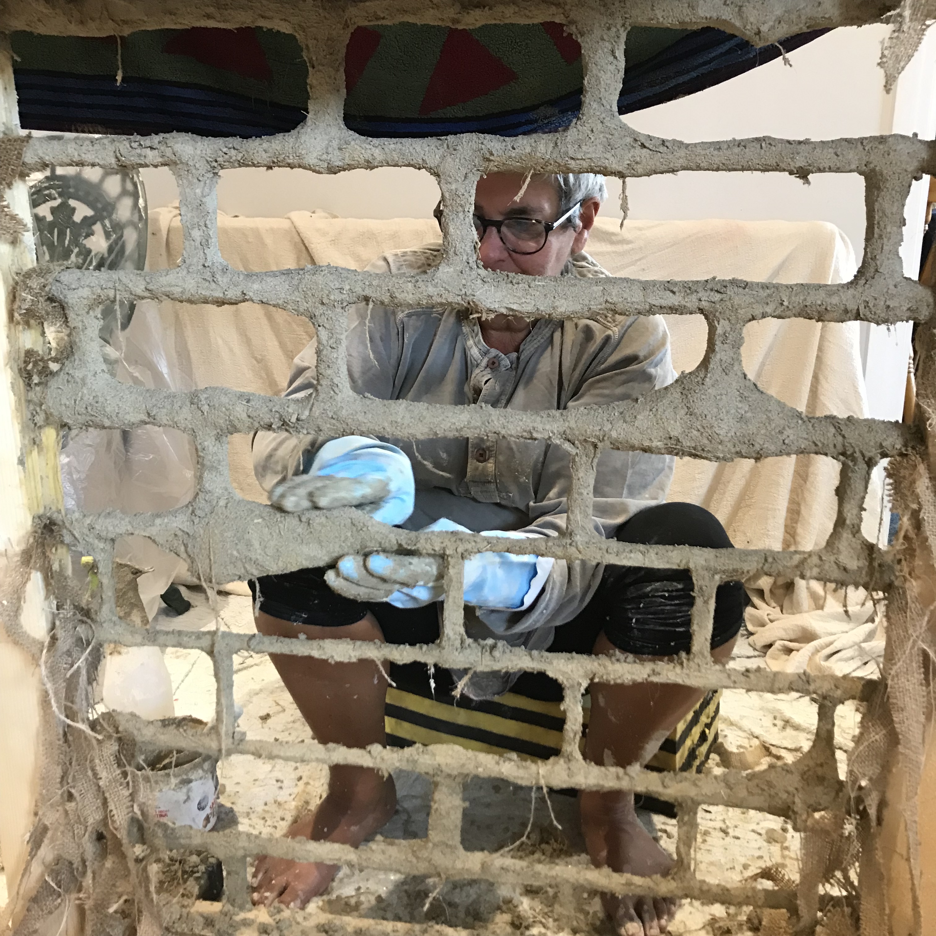 I’ve used jute thread for its natural colour and stiffness. It’s a fibre I’m very fond of and hessian (loosely woven jute) has played an important role in all the pieces involving mortar where it is buried in the mortar to give it strength. In this piece I wanted this humble fibre to have a starring role!
