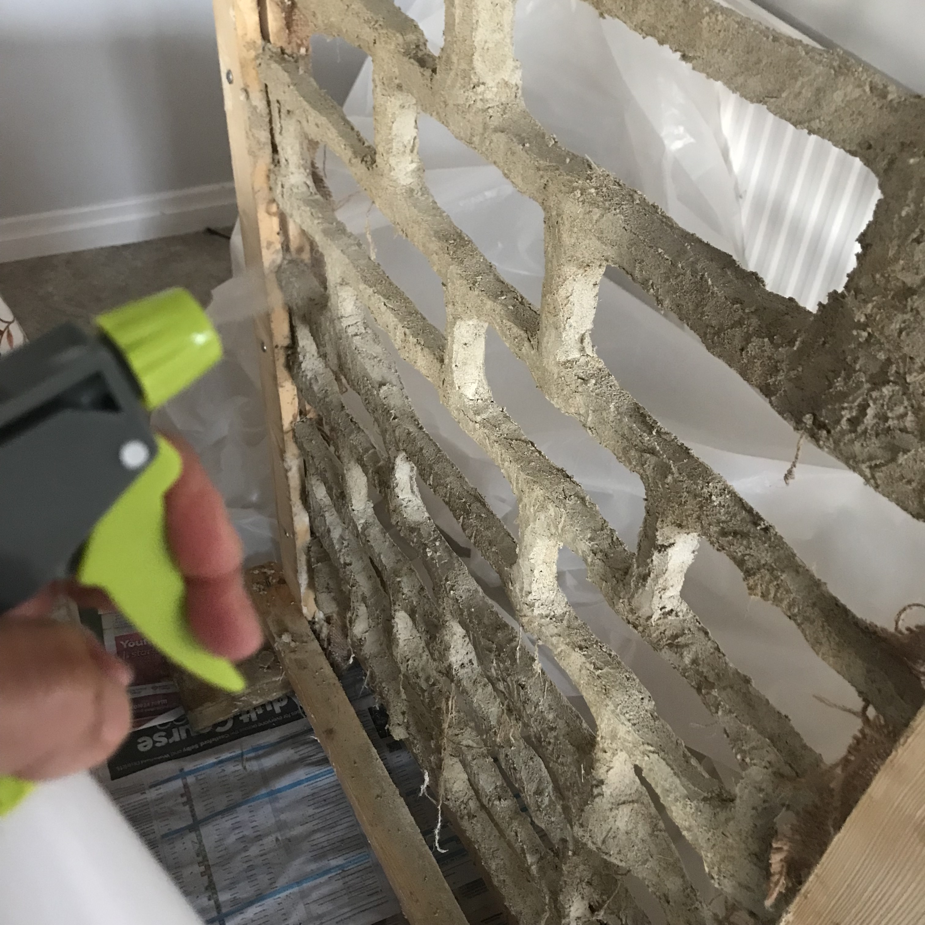 After another period of 5 days of misting and curing, the wall could eventually come out of its frame and we happily got our kitchen back!