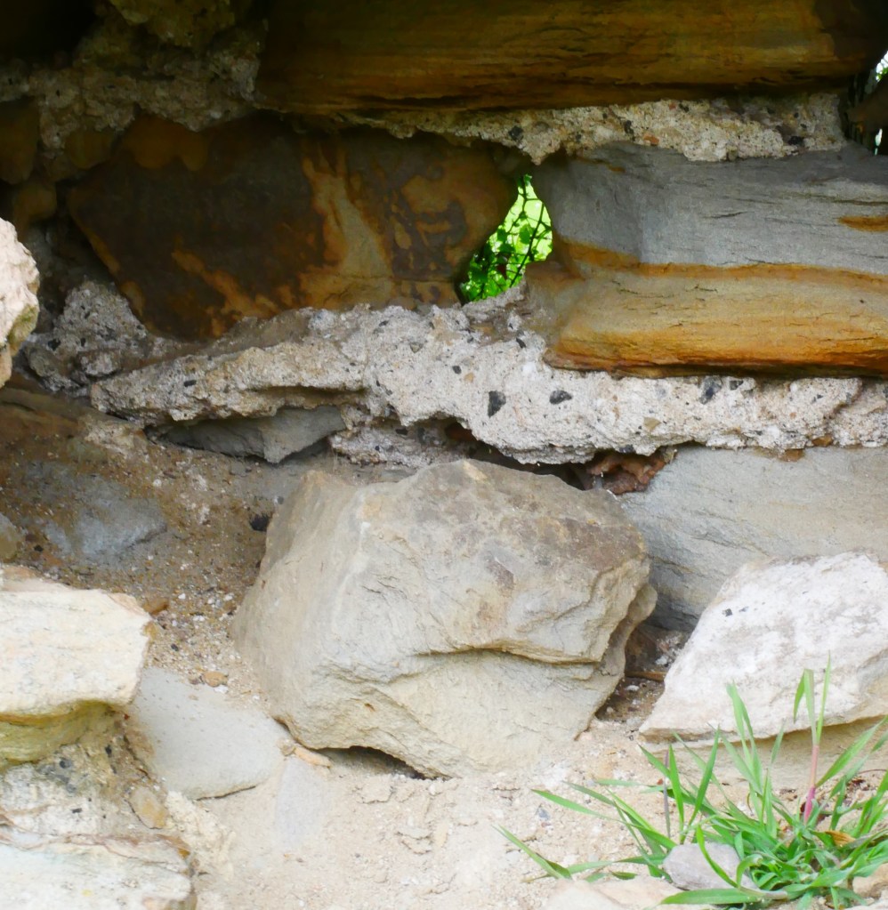 The arrangement did not respect the initial layout – in keeping with the behaviour of a mason I thought, who was hardly likely to be taking care to position blocks in the same configuration that they had laid under the ground since their formation.