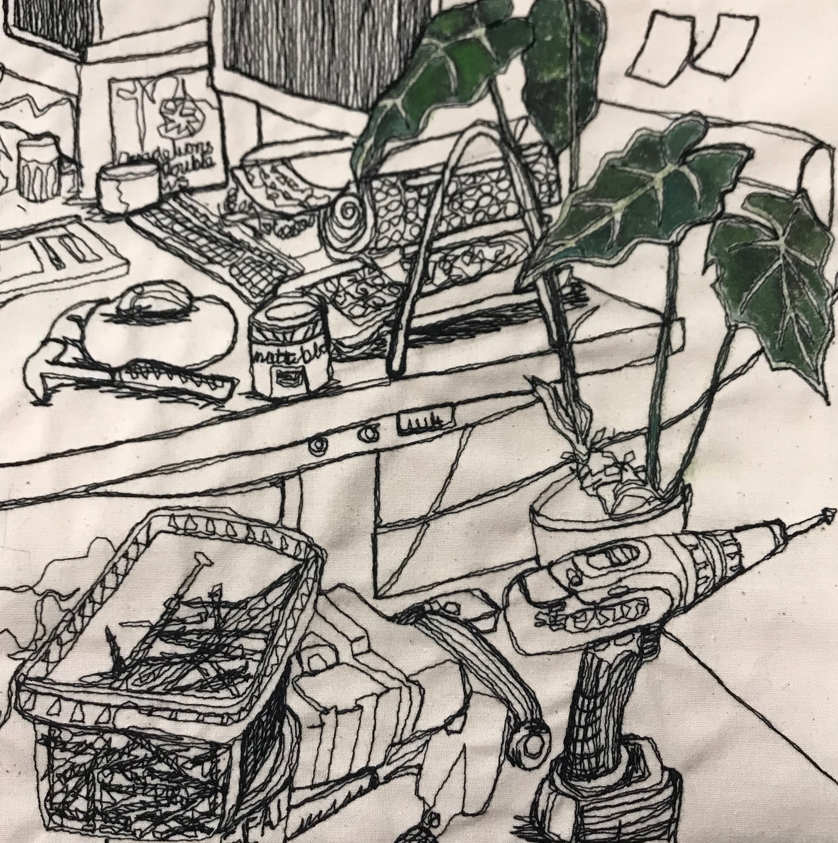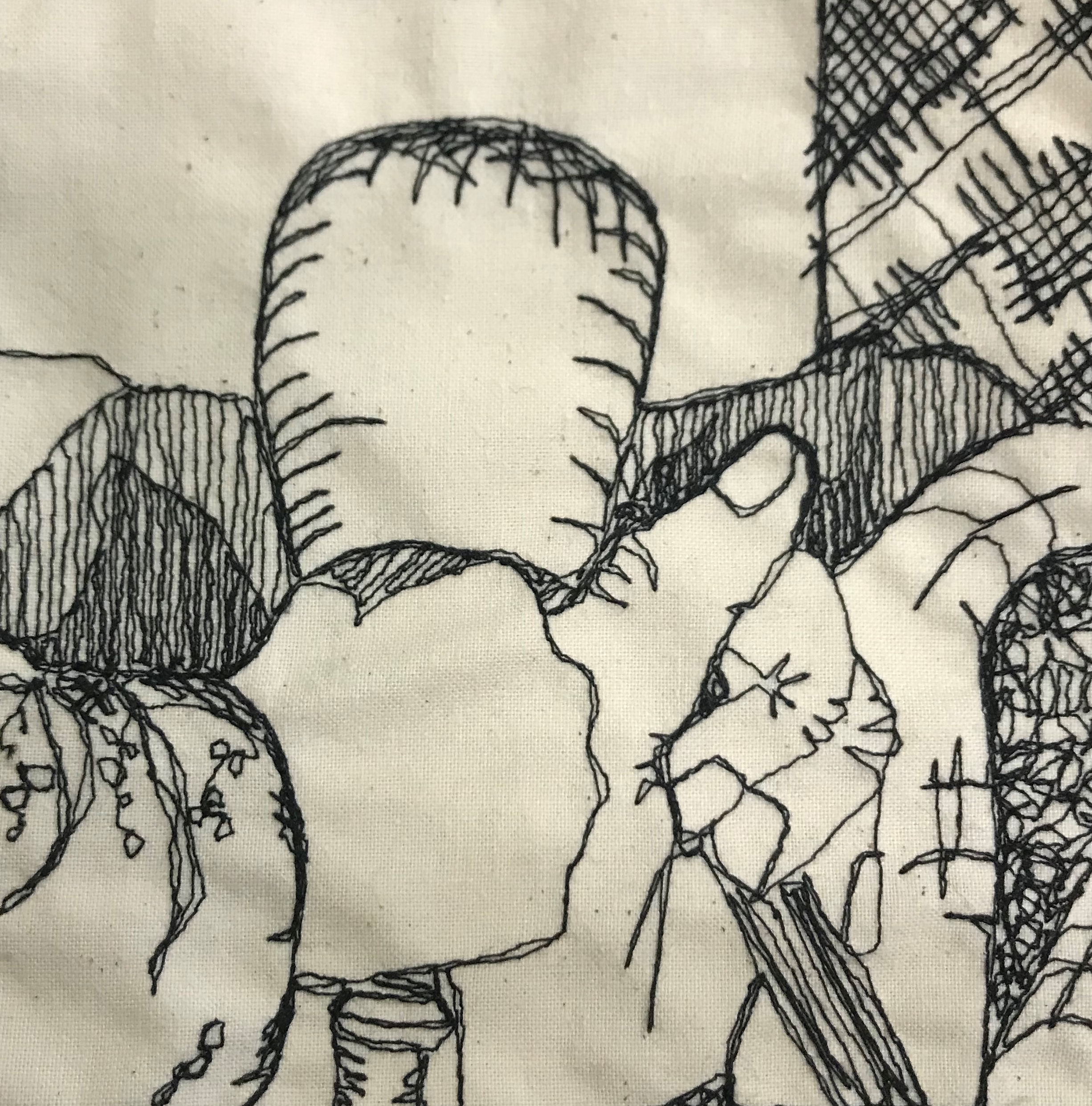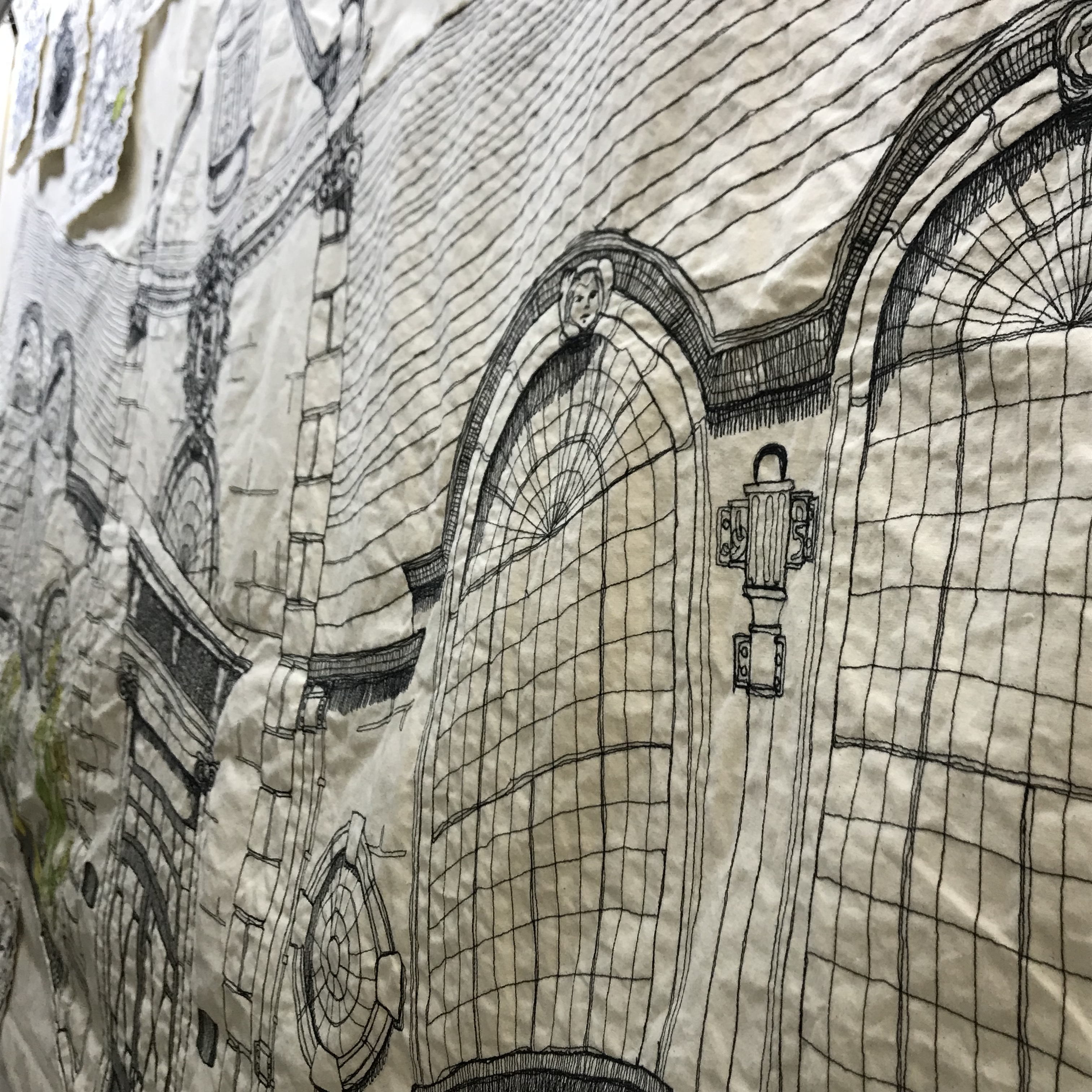 Free-motion embroidery and ink on calico 6 x 1.35 metres